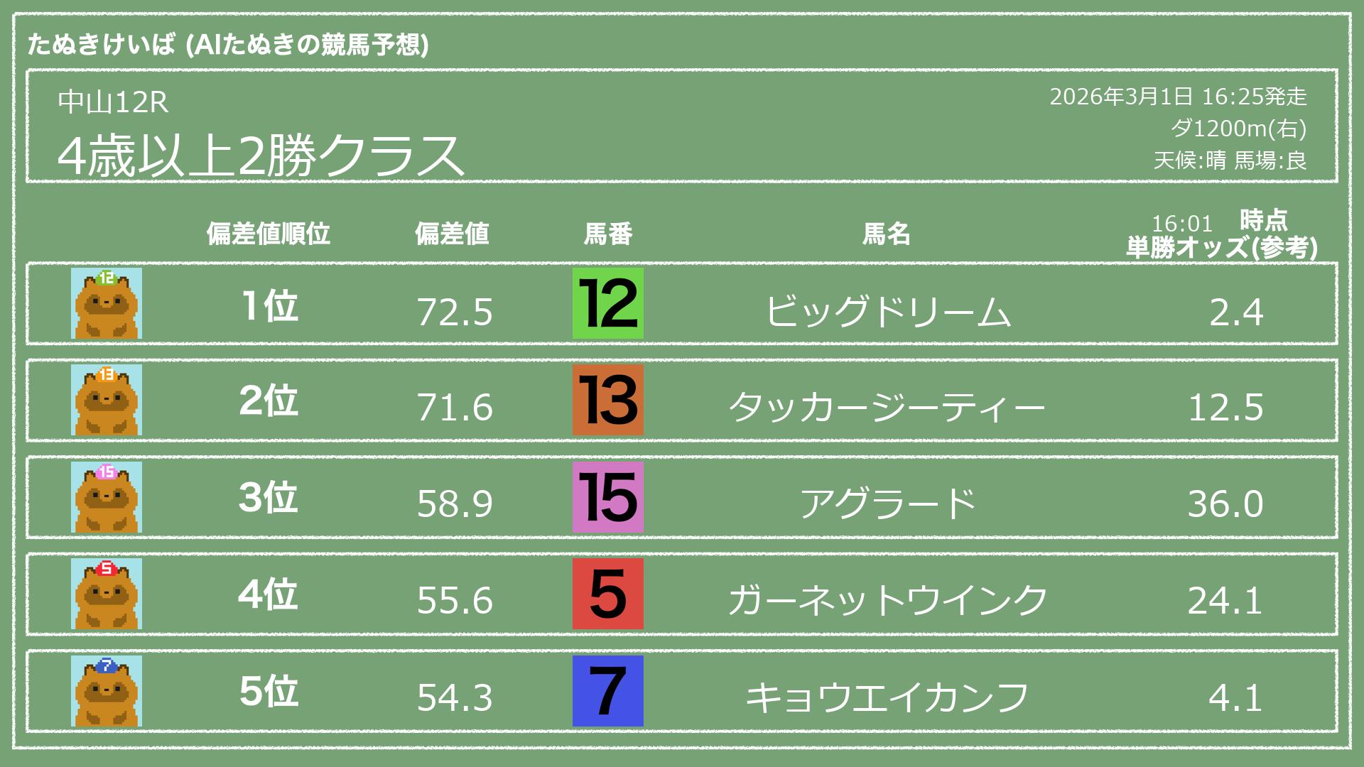2026.03.01 中山12Rの予想