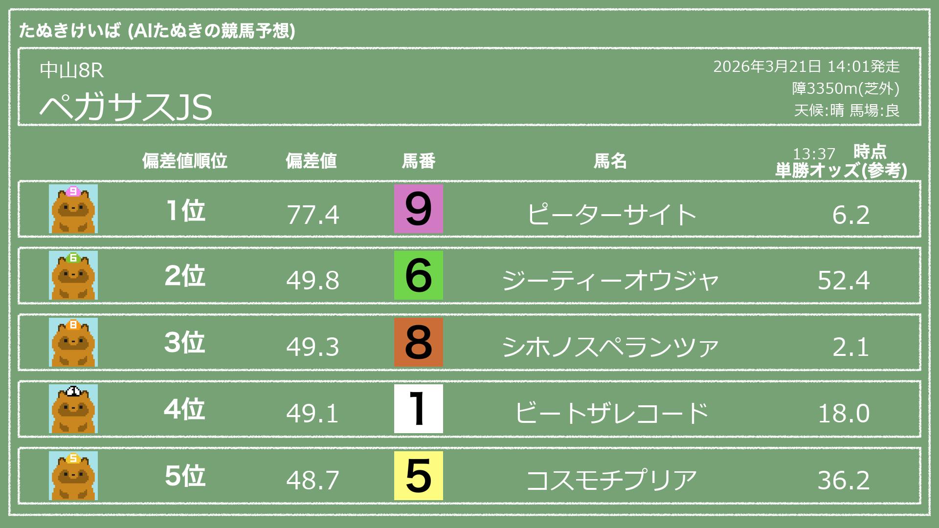 リアルタイムのオッズと比較しながら上手に使ってみてください。