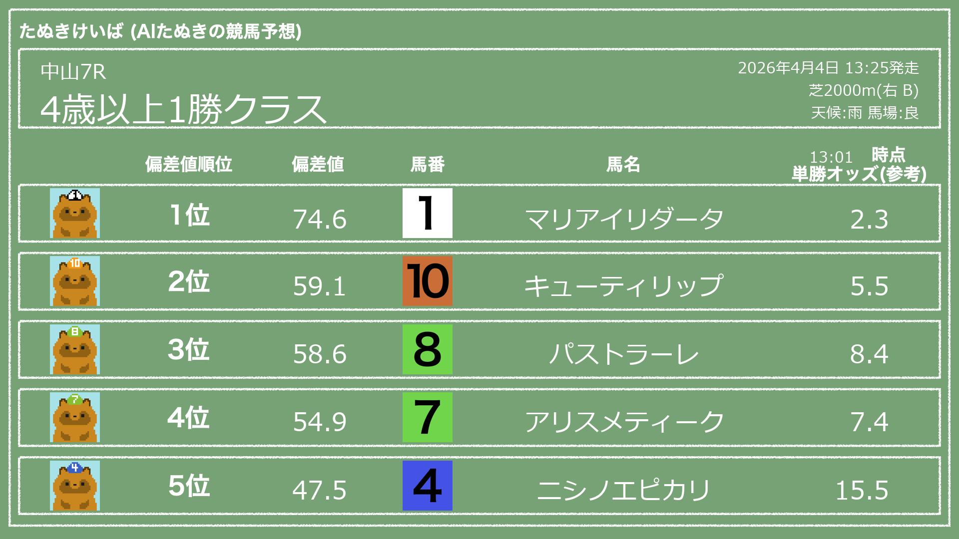 リアルタイムのオッズと比較しながら上手に使ってみてください。