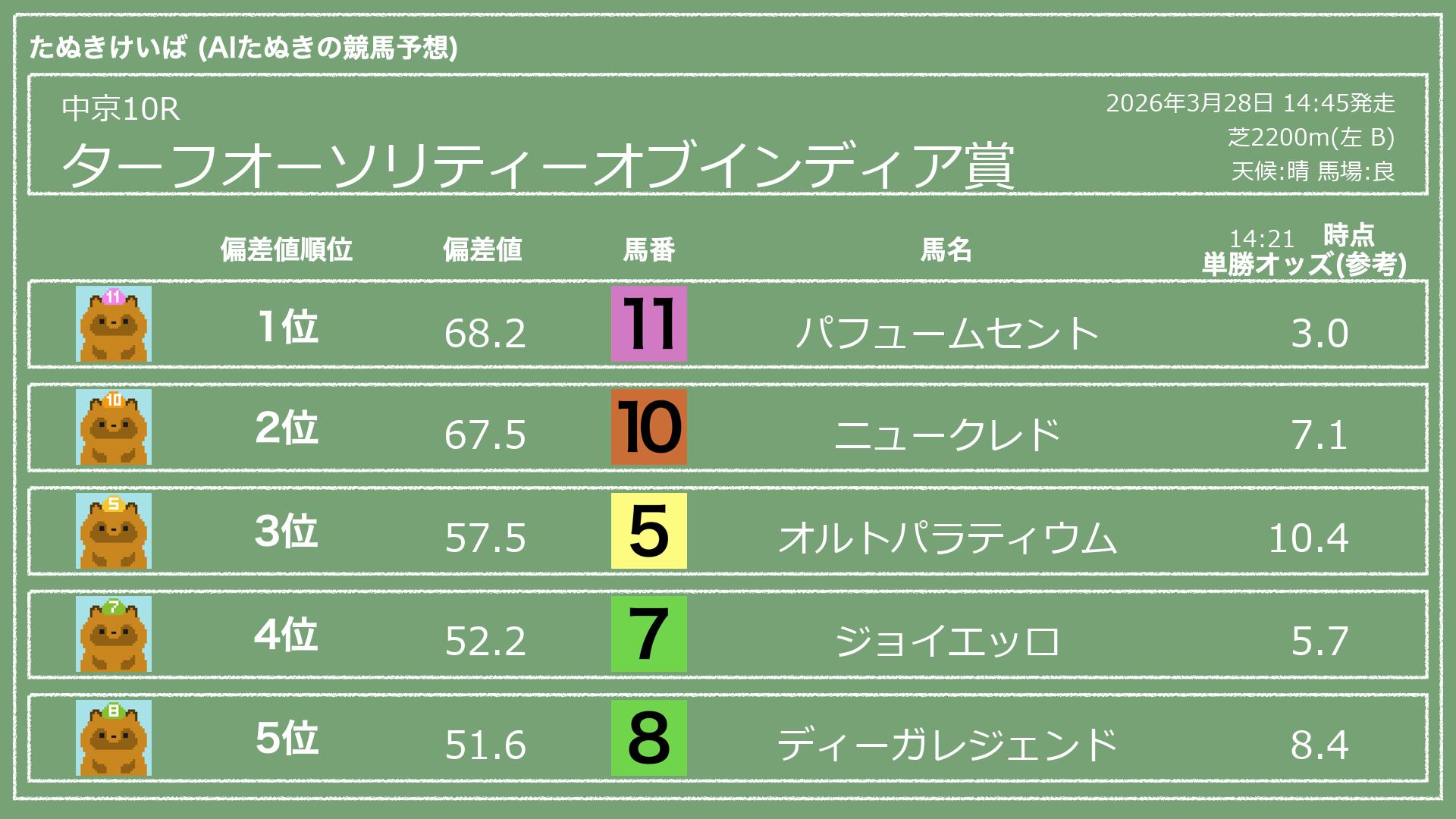 うちのたぬき(AI)による競馬予想です。