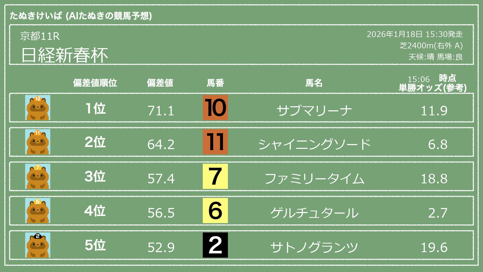 「オッズ」、「人気」についてはデータ取得時の数値であり、リアルタイムの数値とは異なりますのでご注意ください。