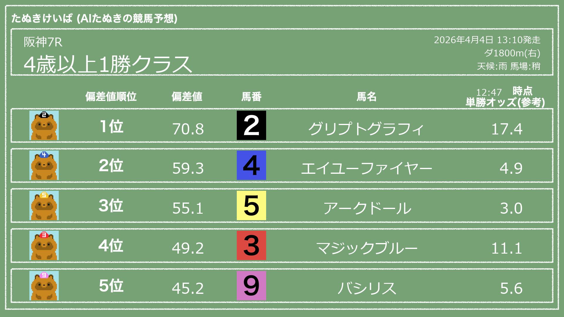 リアルタイムのオッズと比較しながら上手に使ってみてください。