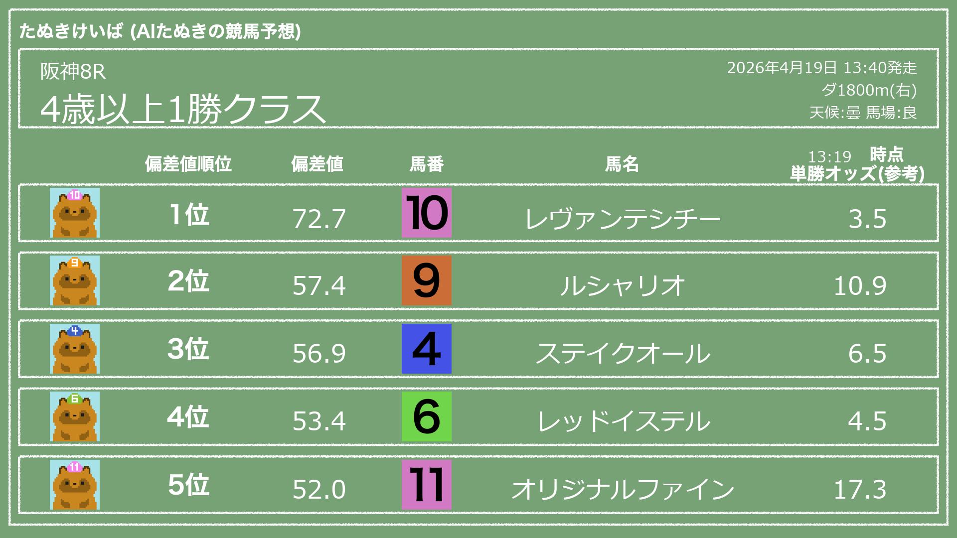 リアルタイムのオッズと比較しながら上手に使ってみてください。