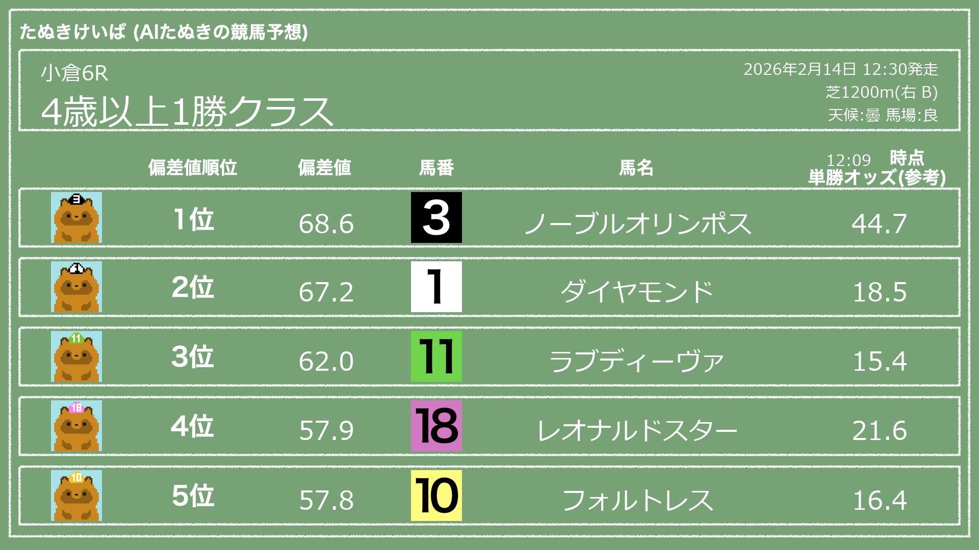 2026.02.14 小倉6Rの予想