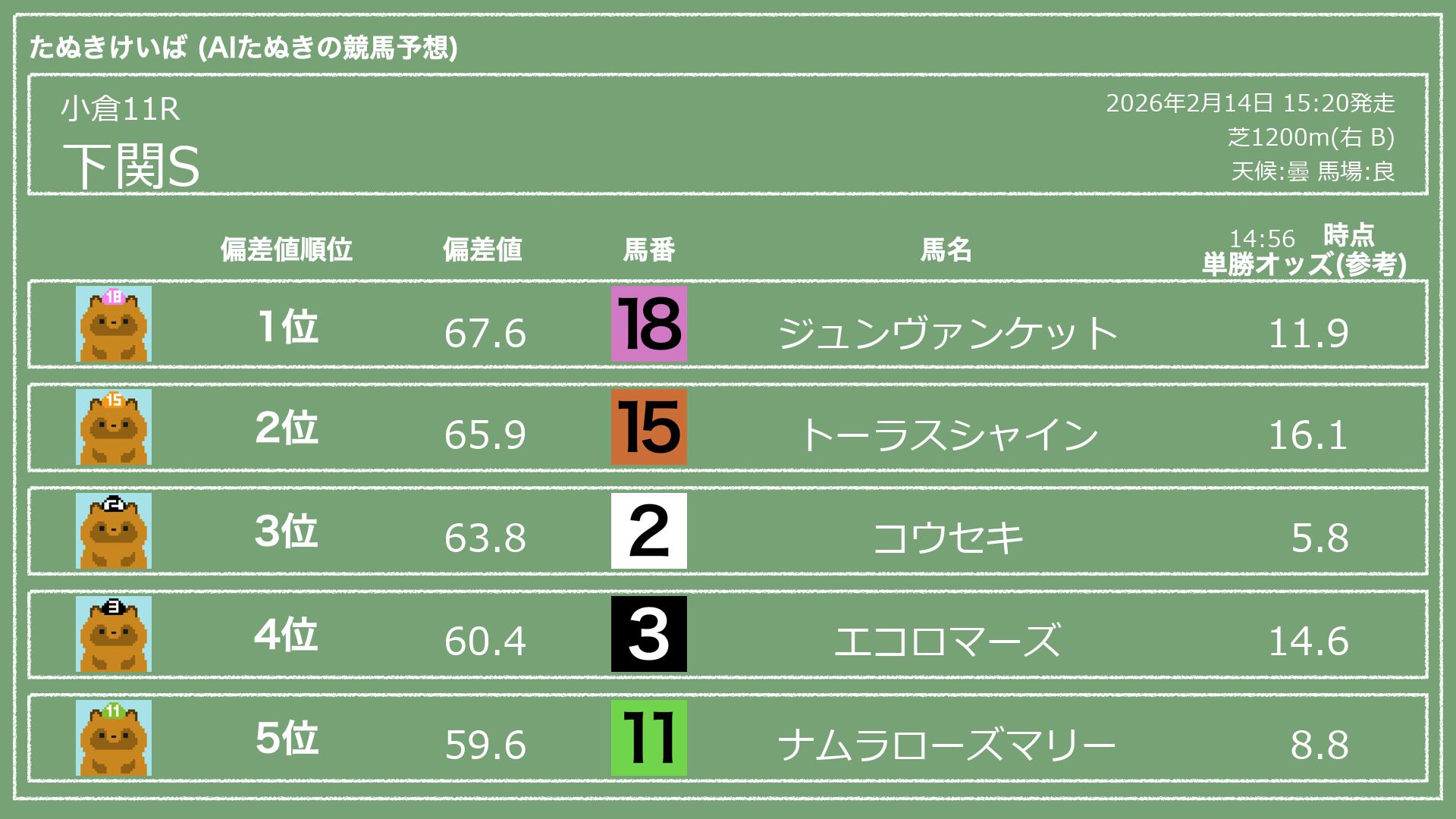 2026.02.14 小倉11Rの予想