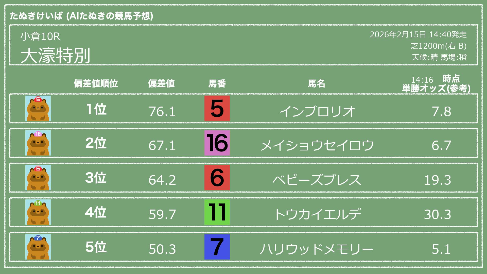 2026.02.15 小倉10Rの予想
